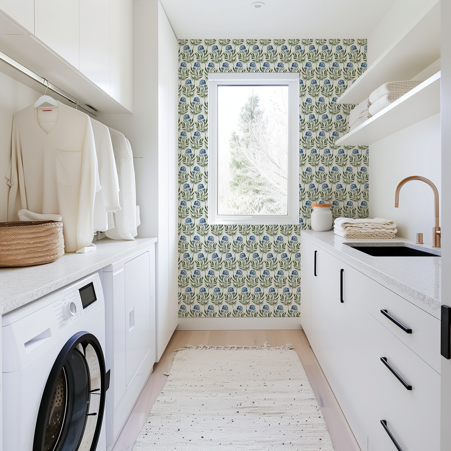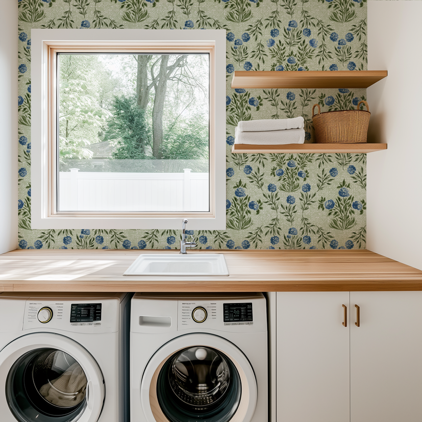 Whether you're designing a cozy kitchen, a charming powder room, or a welcoming entryway, this wallpaper adds a refined, botanical touch while maintaining an effortless, lived-in elegance. Pair it with natural wood accents and antique décor for a beautifully layered and collected look.