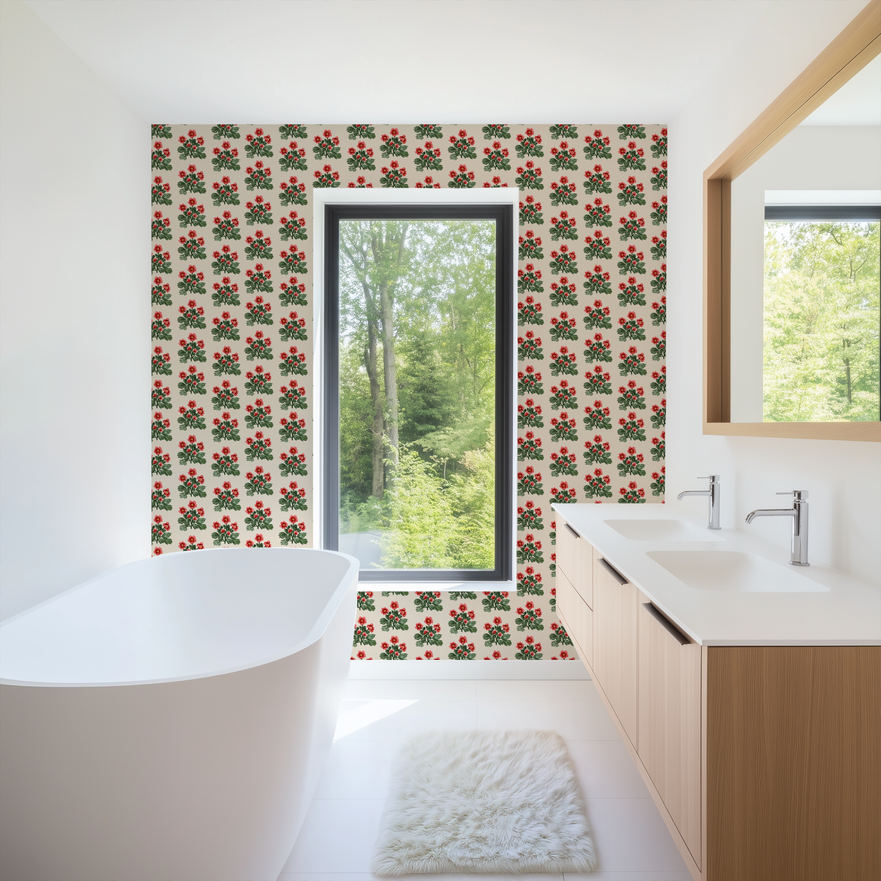 Embrace timeless charm with the Folk Floral Wallpaper in Bone, a beautifully hand-painted floral design that brings warmth and tradition to your home. Inspired by vintage botanical prints and folk art motifs, this wallpaper features delicate red blooms with lush green foliage set against a soft bone-hued backdrop. The classic block-print effect adds depth and character, making it perfect for those who love heritage-inspired interiors.